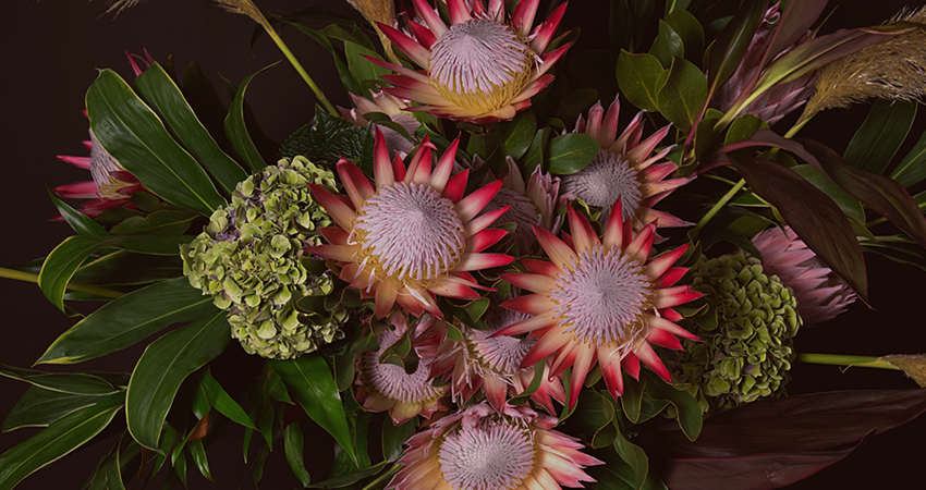 「王者の風格®」は、南アフリカやオーストラリアの大地で力強く咲く希少なネイティブフラワーのプロテアを中心に展開する、“特別な瞬間にふさわしい花” を届けるためのブランド です。